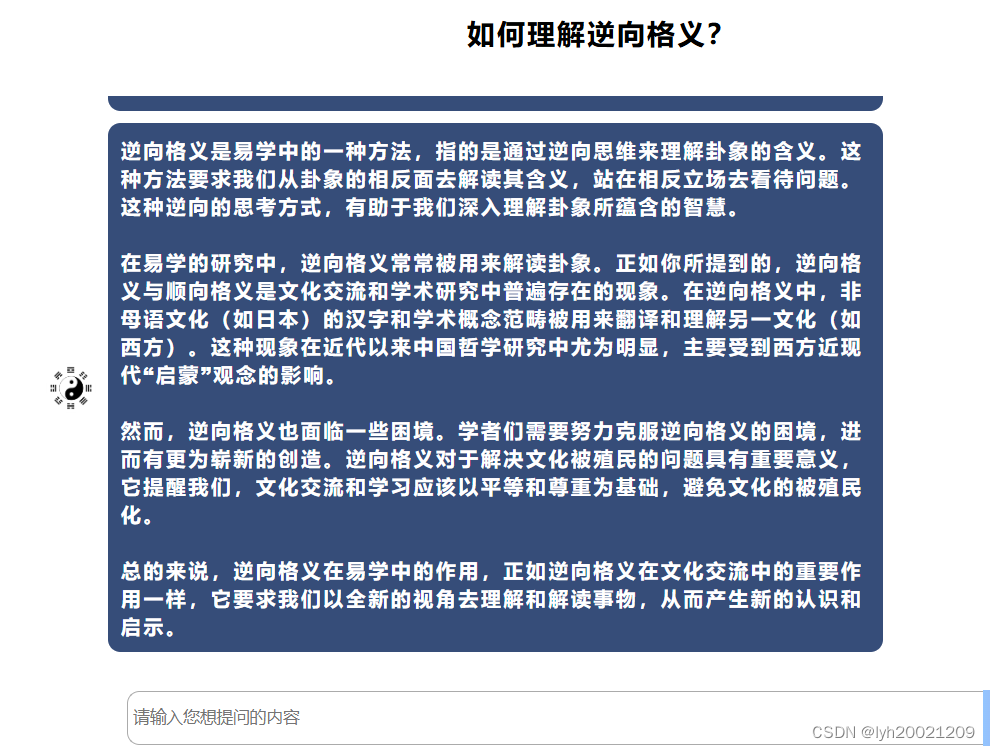 这里我问了大模型一个周易中“逆向格义”这个概念相关示例的问题: