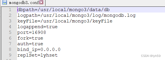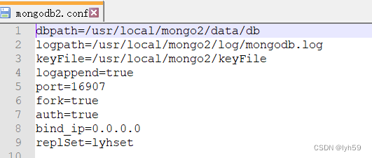 replSet=lyhset则是副本集名字,后面在主节点生成副本集时名字要对上
