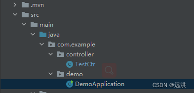 其中主类为DemoApplication,controller放在 com.example.controller下面
