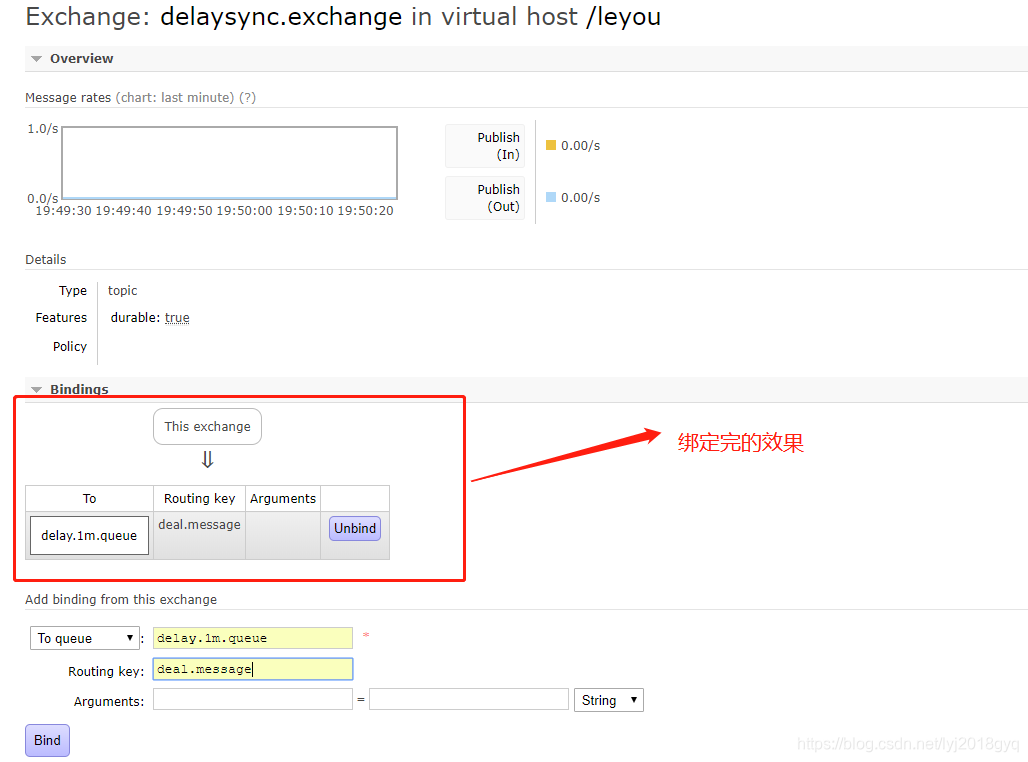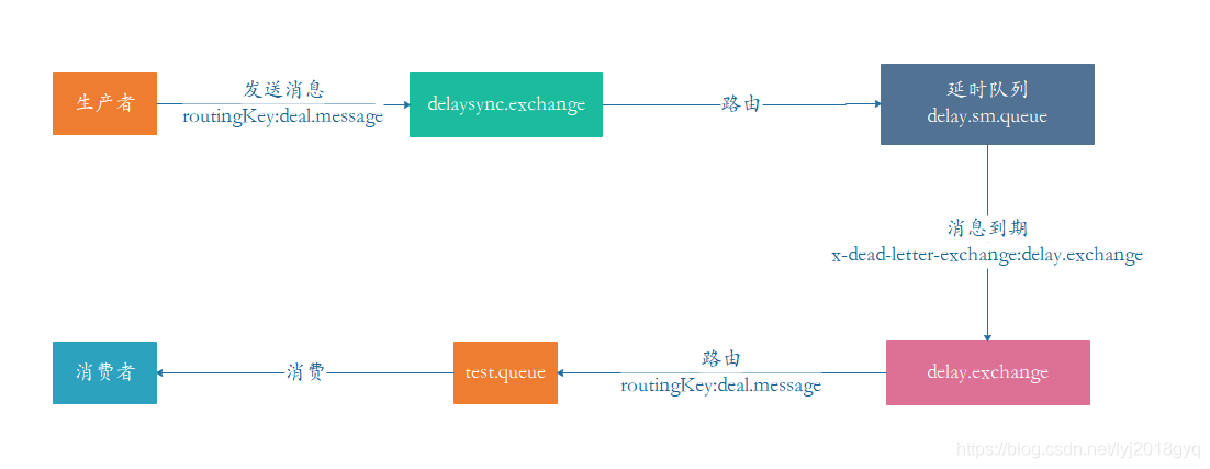 1)创建delaysync.exchange通过Routing key将消息路由到延时队列
