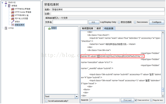 回放Jmeter,查看结果树信息中,可以看到正则提取lt的值;