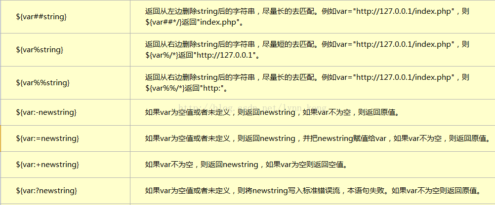 对shell变量的引用方式很多,用这些方式可以方便的获取shell变量的值,变量值的长度,变量的一个字串,变量被部分替换后的值等等。shell变量常见引用方式如下: