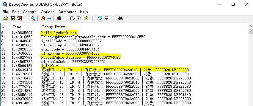 DbgPrint("进程PID: %d | ID: %d | 内存地址: %p | 对象: %p \n", i_id, i, BaseAddr + i * 0x10, ul_decode);