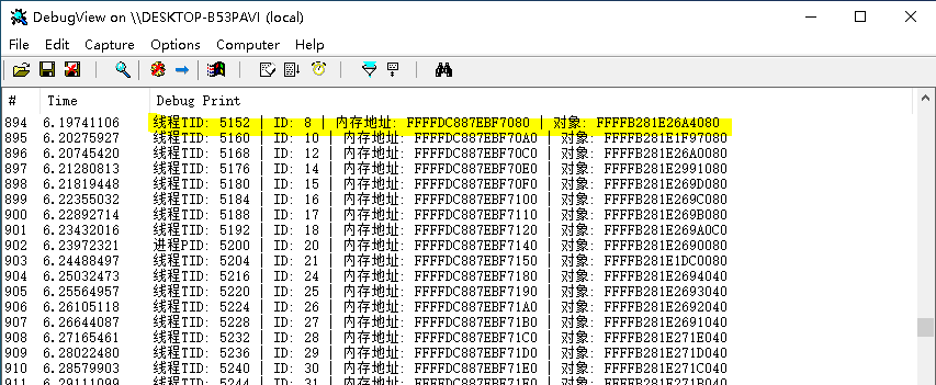 DbgPrint("线程TID: %d | ID: %d | 内存地址: %p | 对象: %p \n", i_id, i, BaseAddr + i * 0x10, ul_decode);