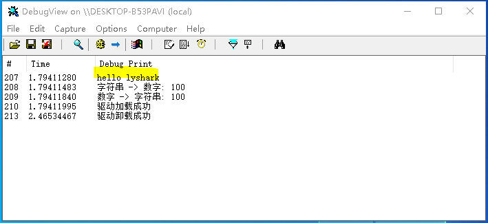 DbgPrint("字符串 -> 数字: %d \n", number);