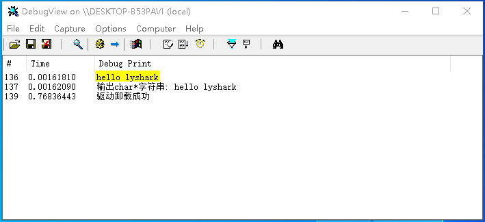 DbgPrint("输出char*字符串: %s \n", szBuf);