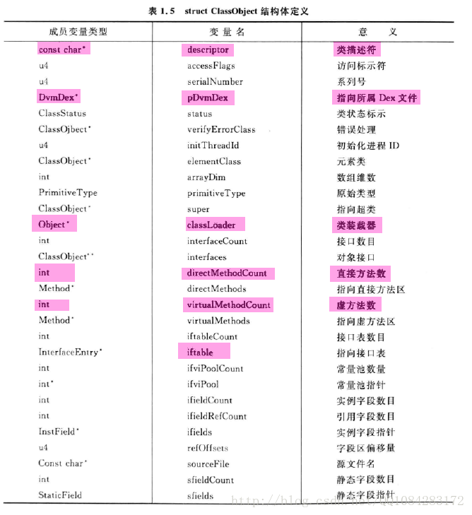 struct ClassObject** pResClasses; // 通过DexFile里的ClassDefItem构造出来的一个结构体(类信息)