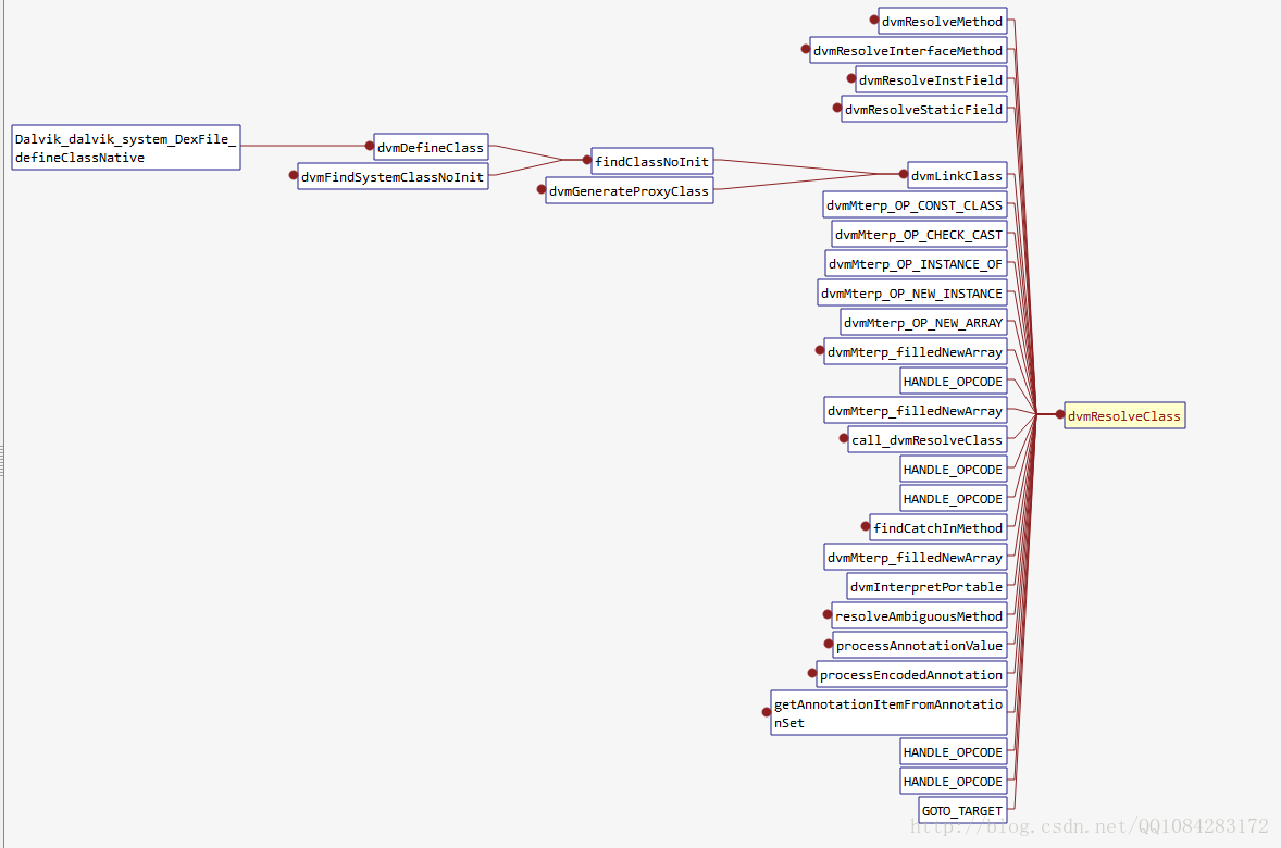 Dalvik_dalvik_system_DexFile_defineClassNative函数到dvmResolveClass函数的整个调用过程: