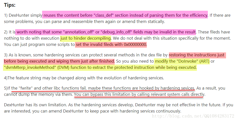 3.其他的大牛对DexHunter工具的弱点的总结: