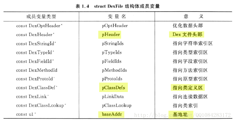 2>. Android的Dex文件相关的重要结构体