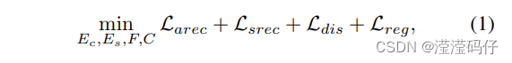 使用一个解码器F,根据它的内容编码器Ec提取的内容特征Ec ( x )、一个样式编码器Es提取的样式特征Es ( x )和域标签lx来恢复外观x。
