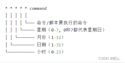 ron语法由五个时间字段和一个命令字段组成,每个字段之间用空格或制表符分隔。以下是cron语法的详细说明:
