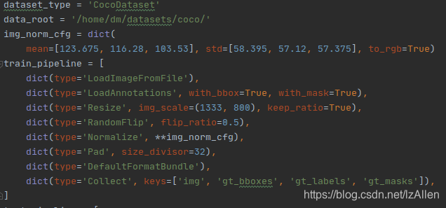 修改coco_instance.py下面的coco数据集的路径data_root,换成自己的coco数据集的路径:
