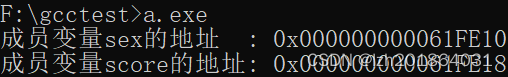 #include <stdio.h> struct Student { char sex; double score; }; int main(int argc, char const *argv[]) { struct Student stu1; printf("成员变量sex的地址 : 0x%p\n", &stu1.sex); printf("成员变量score的地址: 0x%p\n", &stu1.score); return 0; } - 结构体的占用空间看起来是某个数的倍数,那么这个数是什么呢?和什么有关呢?从例1、例2、例3中来看,这个数应该和成员变量的类型有关,现在无法确定。答案在规则1(为结构体开辟内存的基本单位)