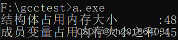 #include <stdio.h> struct Student { int num; char name[32]; char sex; double score; }; int main(int argc, char const *argv[]) { struct Student stu1; int sizeOfStudent = sizeof(struct Student); int sumOfMember = sizeof(stu1.num)+sizeof(stu1.name)+sizeof(stu1.sex)+sizeof(stu1.score); printf("结构体占用内存大小 :%d\n", sizeOfStudent); printf("成员变量占用内存大小之和:%d\n", sumOfMember); return 0; } - 例2: