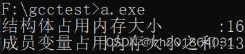 #include <stdio.h> struct Student { char sex; double score; }; int main(int argc, char const *argv[]) { struct Student stu1; int sizeOfStudent = sizeof(struct Student); int sumOfMember = sizeof(stu1.sex)+sizeof(stu1.score); printf("结构体占用内存大小 :%d\n", sizeOfStudent); printf("成员变量占用内存大小之和:%d\n", sumOfMember); return 0; }