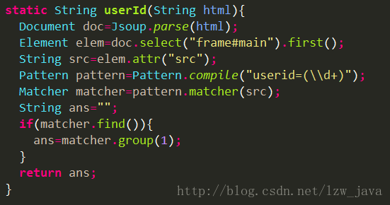 这里用到了正则表达式,group(0)是userid=88888,group(1)就是括号里的内容。\d表示任意一个数字,后面的+表示\d出现一次或一次以上。find()表示表达式有没匹配部分子串,而matches()方法表示表达式是否完全匹配整个字符串。所以src类似<frame userid=88888&ip="的话,matches()将返回false,因为所给的正则表达式不是匹配了整个字符串。