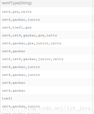 首先,对单词进行了分类,四级、六级、高考的,现在要显示某一类的或者全部类的单词,为了统一,构造了复合查询,查找所有类别的单词的时候,不是去查找所有单词,而是去查找含有这个类别名称、那个类别等所有类别的单词。