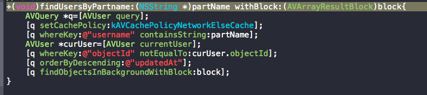可以看到查找用户,正则匹配.*lzw.*,同时objectId不是自己的,来找到其它人,并且根据更新时间的逆序排序。