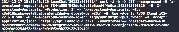 -H 'User-Agent: AVOS Cloud iOS-v2.6.8 SDK'