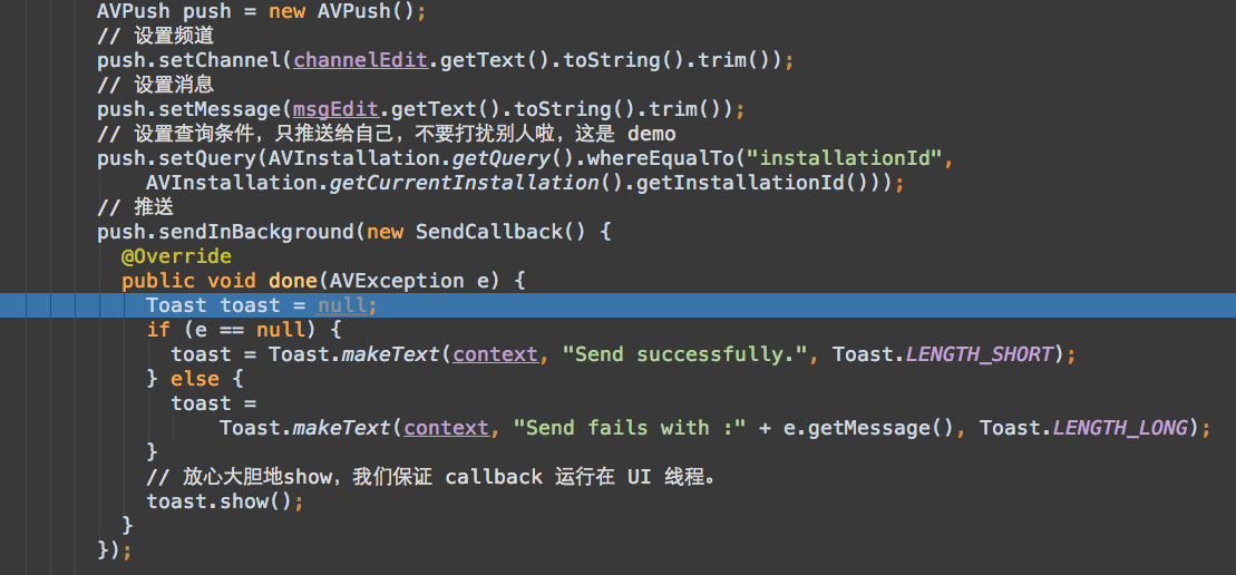 setQuery那句是说,根据installationId来找到自己,然后进行推送。