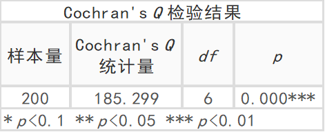 如果是想使用统计检验的方法进行分析差异性,那么就需要使用CochranQ检验、卡方检验法。