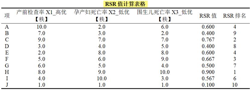 秩和比(RSR)是指分析方法可用于评价多个指标的综合水平情况,其实质原理是利用了RSR值信息进行各项数学计算,RSR值介于0~1之间且连续,通常情况下,该值越大说明评价越‘优’。SPSSAU输出秩和比RSR计算结果如下:秩和比RSR帮助手册