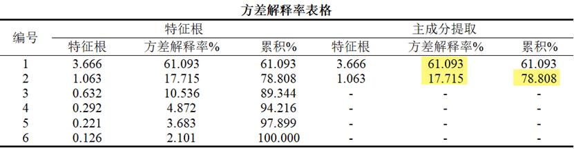 权重计算是主成分的一类应用场景,其原理在于使用方差解释率进行主成分权重计算。如下图:得到的2个主成分的方差解释率和累积方差解释率: