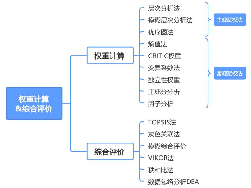 权重计算方法包括两大类:主观赋权法与客观赋权法,下面分别介绍常用的分析方法。
