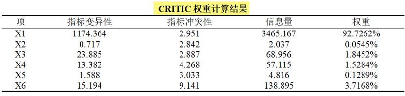 综合考量指标间的对比强度和冲突性,对比强度使用标准差进行表示,如果数据标准差越大说明波动越大,权重会越高;冲突性使用相关系数进行表示,如果指标之间的相关系数值越大,说明冲突性越小,那么其权重也就越低。该方法能有效处理指标信息重叠问题,适合多指标综合评价体系。
