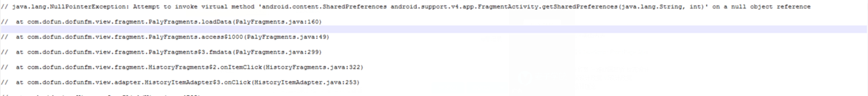 最开始有xxxException:xxxxxxxx,然后下面跟着 com.dofun.dofunlauncher.xxx、com.dofun.dofunmusic.xxx、com.dofun.dofunfm.xxx、com.dofun.dofuntheme.xxx、com.dofun.dofunassistant.xxx、com.dofun.dofunweather.xxx