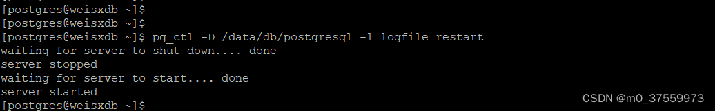 pg_ctl -D /data/db/postgresql -l logfile restart
