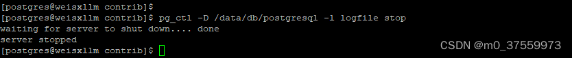 pg_ctl -D /data/db/postgresql -l logfile stop