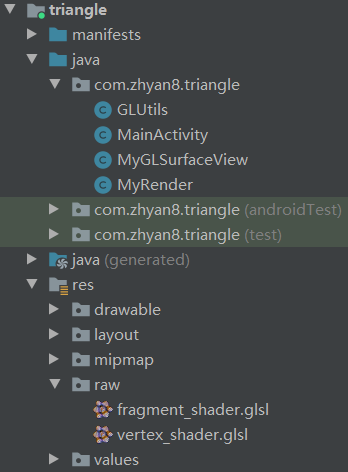 本文将以绘制三角形的案例介绍图元的绘制,项目目录如下: