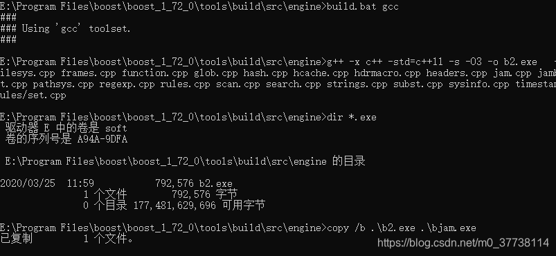 4、把目录下生成的 bjam.exe 复制到boost根目录 E:\Program Files\boost\boost_1_72_0