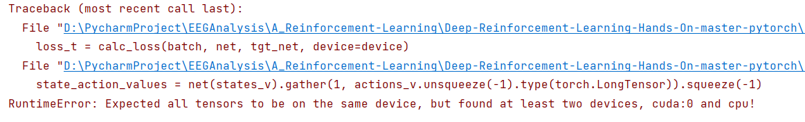 看到这个报错我就想,是不是只要涉及到Tensor的地方,都要带一个 to(device),此处的device指的是cuda