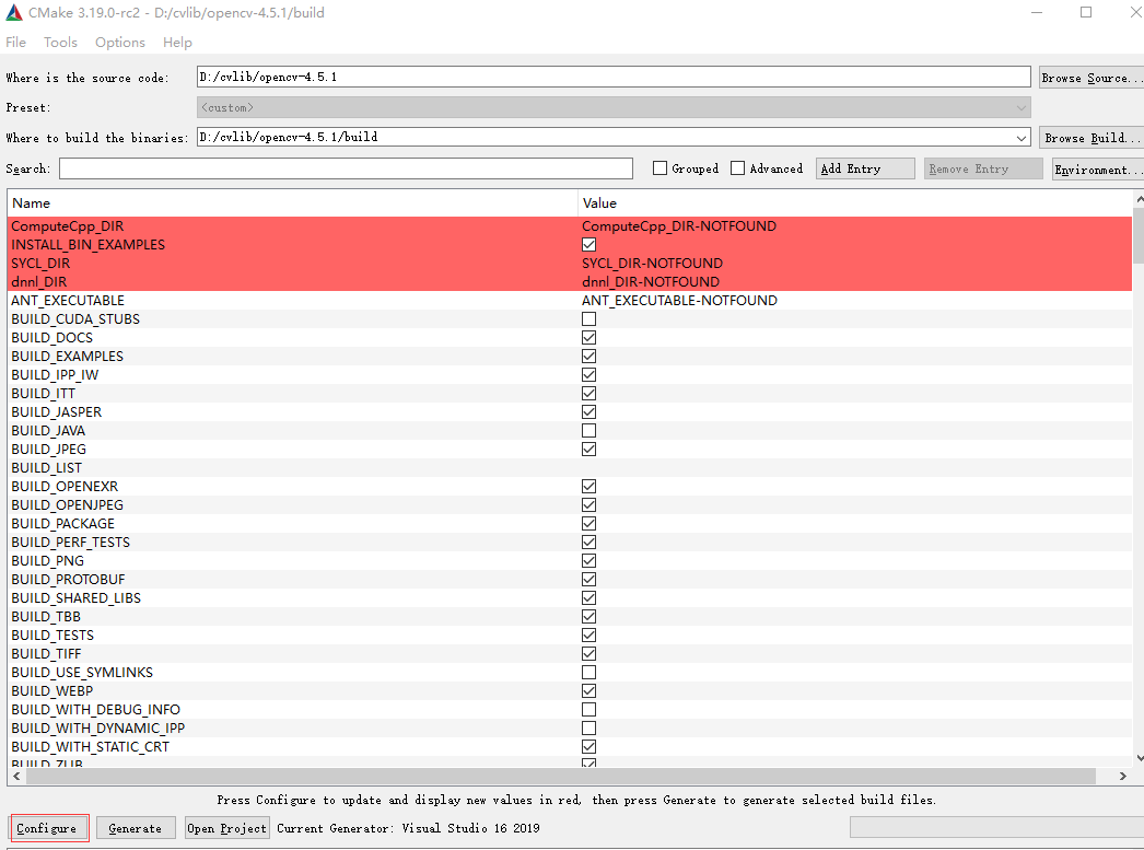 OpenCV+cmake 生成vs工程 和OpenCV动态库(附视频链接) 目录前言学前准备编译OpenCV下载相关库通过CMake生成相关工程下回预告对学者的建议前言 本文是OpenCV学习系列开篇之作,旨在为OpenCV的初学者指明学习的道路,并以vs2019+opencv4.5.1的环境搭建为例,介绍OpenCV的编译过程。学前准备 对于编程功底较好的同学,建议通过OpenCV源码进行学习;对于刚学习编程不久的同学,可以先通过一些教材深入了解OpenCV。笔者推荐的教材是安德里安的学习OpenCV3。编译OpenCV 编译OpenCV的步骤如下,1.下载相