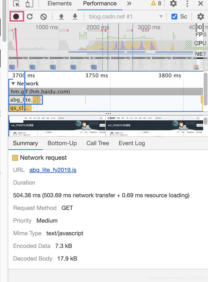 1、点击录制,刷新一下页面或者滚动等操作让页面渲染一下,然后点击stop,就可以看到页面的渲染情况。