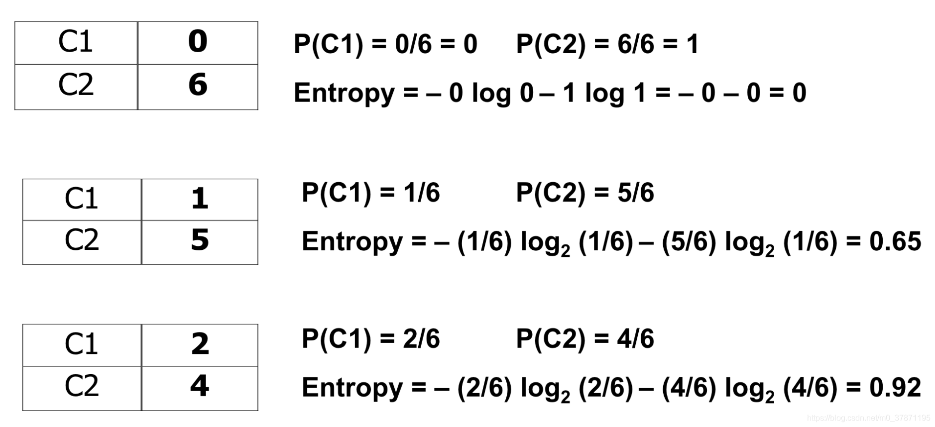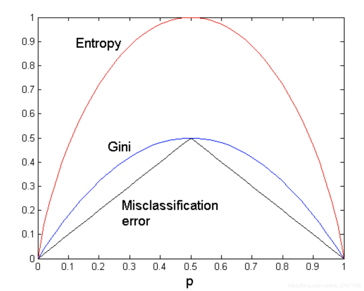 可见在概率等于0.5时,达到峰值,此时纯度最低。而概率越小或越大,确定性就越高,纯度越大。