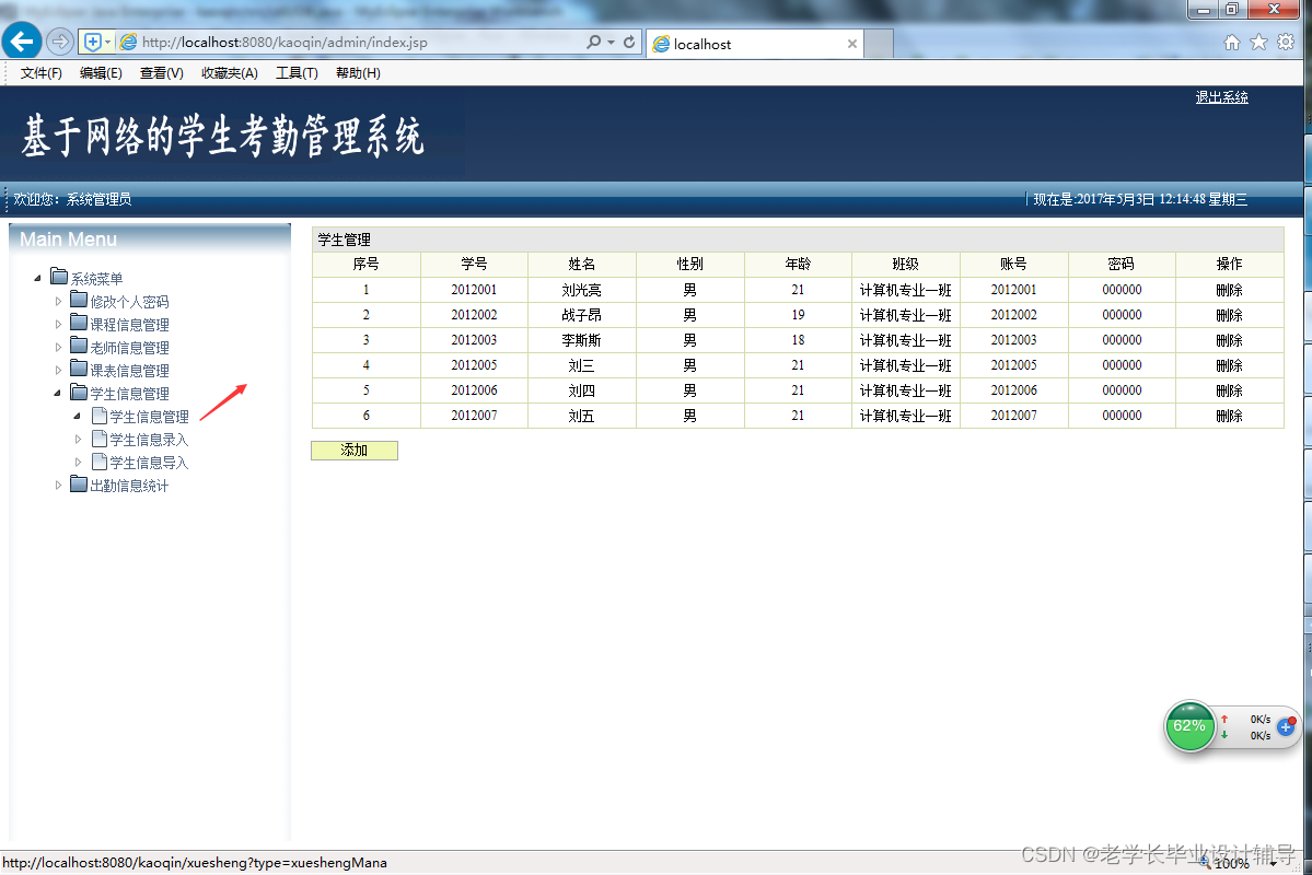 基于JSP+Servlet开发学生考勤系统+论文(大作业/毕业设计)