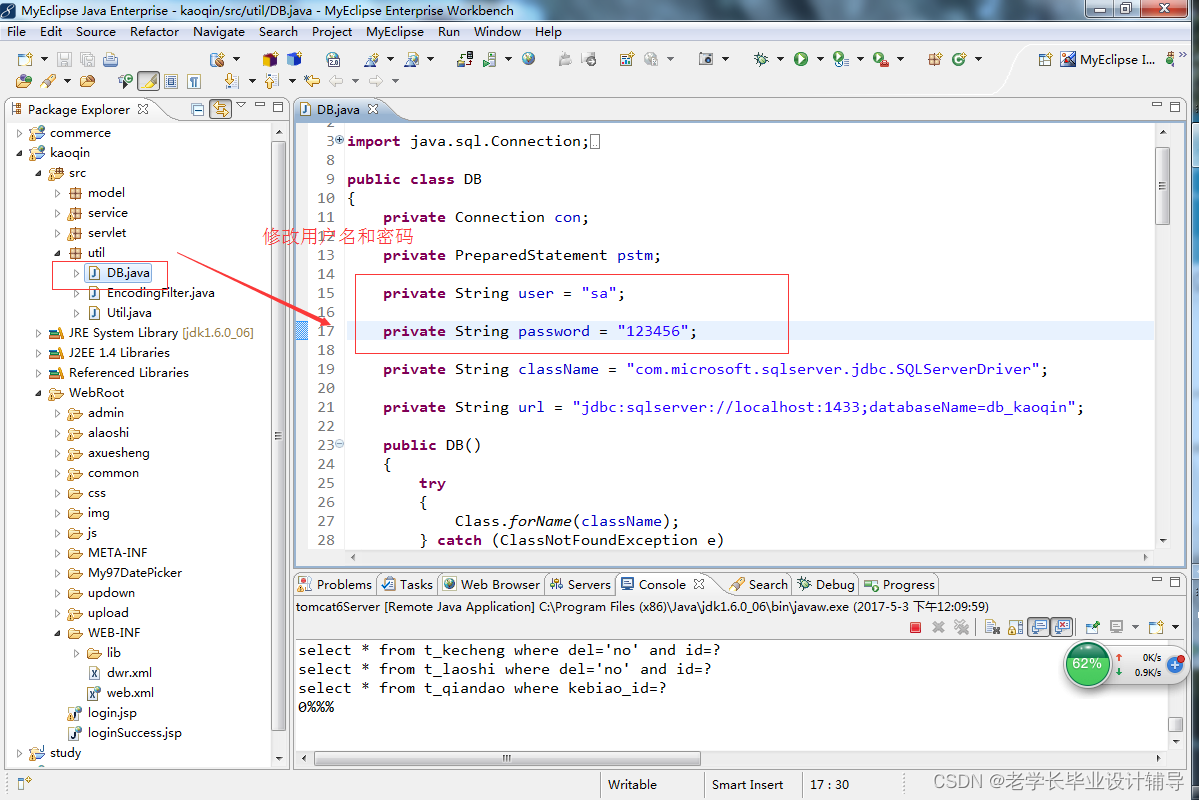 开发工具:Myeclipse+Jdk+Tomcat+SQLSERVER数据库