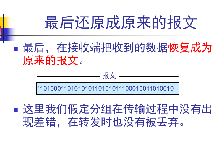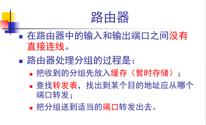 - 路由器对分组进行存储转发,最后把分组交付目的主机。