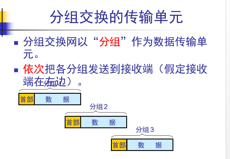 - 分组必须携带的首部(里面有必不可少的控制信息)也造成了一定的开销