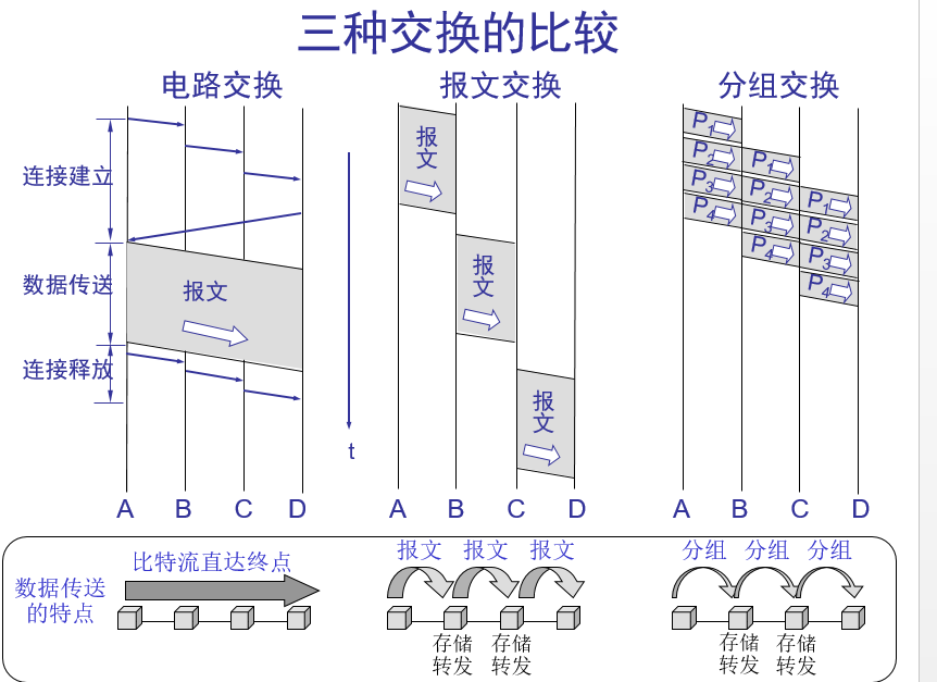 - 高效 动态分配传输带宽,对通信链路是逐段占用。