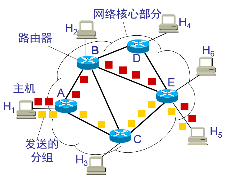 - 主机是为用户进行信息处理的,并向网络发送分组,从网络接收分组。