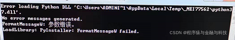 3). 软件打包的电脑是window10系统,运行报错的电脑是window7系统,在其他window10系统的电脑上可以正常运行