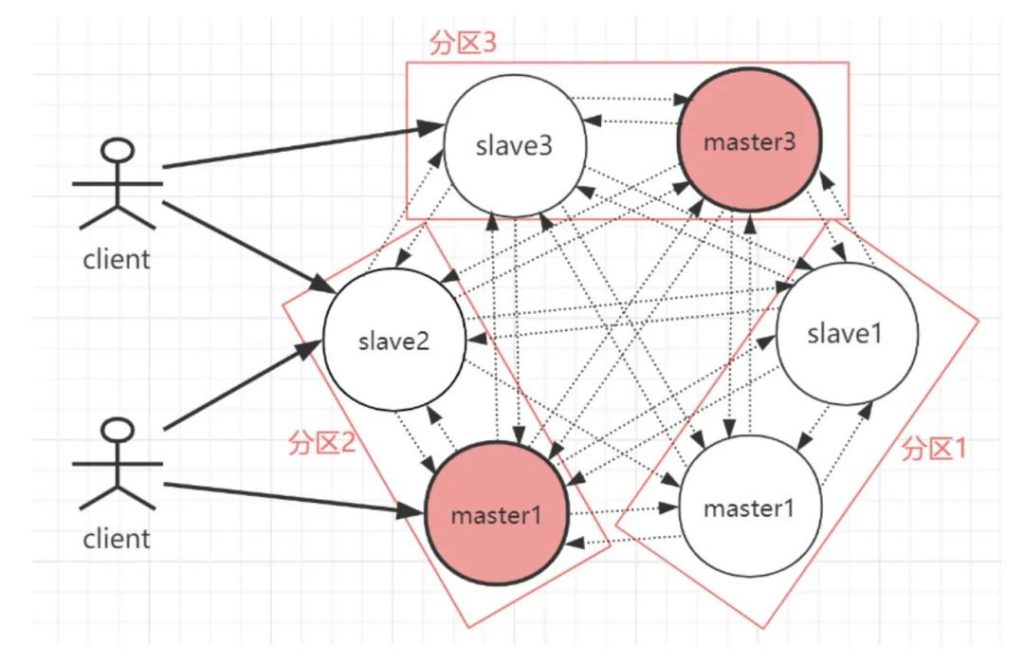 - 每一个分区都是由一个Redis主机和多个从机组成,分片和分片之间是相互平行的。