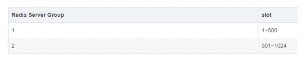 例如,系统有两个Redis Server Group,Redis Server Group和slot的对应关系如下。