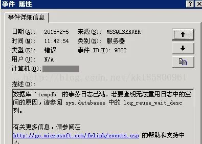 是tempdb问题,但是刚才看日志才几M,根据提示查看日志状态: