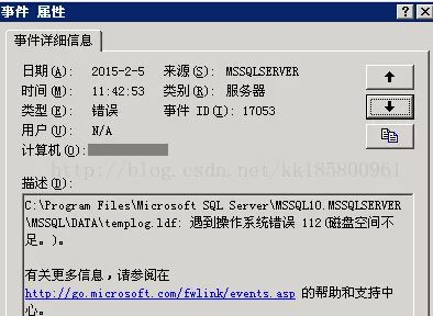 第一反应就想可能是日志问题,很可能是数据库日志问题于是查看日志,都不大,正常。